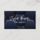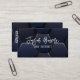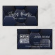 This design features a minimalist, stylish, professional business card with a blue honeycomb like pattern background and white coloured text and icons. The front includes a customisable option to add your full name in a script font and profession or job title. The back has customisable options to add your full name, contact information (telephone number, e-mail, website, mailing address) and upload your very own scannable QR code image.