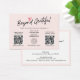 This Trendy modern QR code gift card with stylish calligraphy script is a perfect choice to show your gradtitute to your customer. Features 2 QR code, social media and networking info. On the back of the card you can write more message to your customer or just write your business info. Your customer will loves this pretty and chic QR code gift certificate.