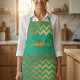 Modern Stylish Chic Green And Gold Chevron Apron