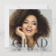 Modern and bold, square "Photo" graduation announcement cards, featuring design elements of dark transparent, modern fashion style text reading "GRAD", with minimalist typography. The graduate's photo on the front of the card highlights the entire surface. The back of the card offers personalised text spaces for information about your graduation and future journey. Perfect for the high school, college and university grad student seniors.
