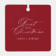 Modern Stylish Couple First Christmas Script Photo Metal Tree Decoration