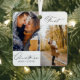 Modern Stylish Couple First Christmas Script Photo Metal Tree Decoration