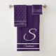 Modern Stylish Dark Purple White Monogram Bath Towel Set