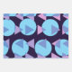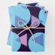 Three sheets of wrapping paper in an aesthetic purple and blue with an abstract geometric shapes pattern.