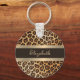 Modern Stylish Leopard Pattern Brown & Gold Stripe Key Ring
