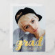 Modern Stylish Photo Graduation Gold Foil Invitation Announcement Card. Personalise it with your photo, the grad's name, school name and graduation year. Replace the grad's info text on the back with your details or type your own personalised text. A modern and elegant graduation photo announcement card with real gold foil text. A lovely way to share your high school or college achievements with your family and friends.