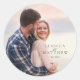 Customize this cust wedding sticker by adding a picture of the couple. To personalize it, simply click 'Personalize this Design,' upload your photo, enter your details, and Zazzle will handle the rest. This wedding sticker is part of the Cream Minimalist Wedding Collection.