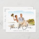 This is a modern stylish photo wedding thank you card using an elegant handwritten script font, printed on a convenient postcard.