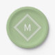Modern Stylish Sage Green Custom Monogram Paper Plate