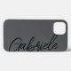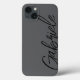 This iPhone case features a charcoal grey background with a modern stylish navy black script. Personalise it with your name or initials,