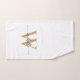 Girly Feminine Stylish Modern White and Gold Monogram Initial Name Signature Script Custom Personalised Bath Towel Set. Featuring a first name (or family name) in a pretty hand lettered style swash tail font typography (or calligraphy) with monogram initial in gold and black on white colour background. Great stylish feminine housewarming gift, also for birthday, bachelorette party, sweet 16 birthday party, bridal shower, wedding, mother’s day, anniversary gift and for graduation party and It’s for the girl who likes stylish elegant things.