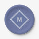 Modern Stylish Slate Blue Custom Monogram Paper Plate