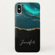 Modern Stylish Teal Agate & Gold Ribbon on Black Case-Mate iPhone Case