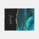 Modern Stylish Teal Agate & Gold Ribbon on Black Fleece Blanket