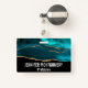 Modern Stylish Teal Agate & Gold Ribbon on Black ID Badge