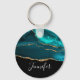 Modern Stylish Teal Agate & Gold Ribbon on Black Key Ring