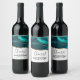 Modern Stylish Teal Agate & Gold Ribbon on White Wine Label