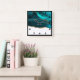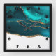 Modern Stylish Teal & Gold Agate on White Square Wall Clock