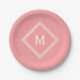 Modern Stylish Watermelon Pink Custom Monogram Paper Plate