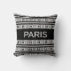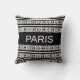 Modern stylish white Paris calligraphy on black Cushion