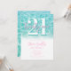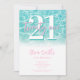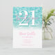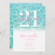 Modern summer pool party 21st birthday invitation featuring elegant calligraphy script typography and minimalist design in blue, white and pink colour.