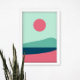This modern sun and sea landscape print is minimalist, stylish and cute. The turquoise, blue and pink colours can be customised to suit your interior decor.