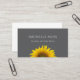 Modern sunflower business card, with a yellow botanical image on a classic grey background. With simple typography, you customise with your own name or title. The back of the card has a white background and grey customisable lettering. Great for getting the word out about your business.