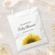 Simple Floral Gender Neutral baby shower favour bag, with a modern yellow sunflower image and a script typography design. With black lettering, you can add your own information. A cute way to add a touch of country to your baby shower!