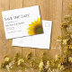 Modern floral Save the Date announcement card, with a yellow sunflower design and simple typography. With customisable black lettering, you can add your own information. This minimal design makes a great addition to your wedding planning activities.