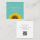 Modern Sunflower QR code Trendy Teal Green Square Business Card