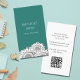 QR code Modern Floral Event Planner business card, with a white sunflowers design on a teal green and white background. With customisable black and white lettering, you can add your own information. Great for promoting your event planner business with a trendy boho style.