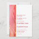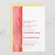 This quirky modern semi-formal wedding invitation with a little fun and excitement in this gorgeous colour spectrum of Indian Red, viva magenta, melon, gold and Banana Mania yellow. On the front is an original alcohol ink artwork bordering the invitation text with a contrast band of pastel yellow. This modern pink is from the spectrum of the viva magenta colour of 2023. This beautiful artwork was created by international artist Pauline Benjes using alcohol ink in gorgeous summer hues. To complement the exciting and unique artwork the front has a straightforward yet elegant modern text layout using serif and san serif fonts. The colour hex code for this pink is #FE6774 and the yellow is #f4ebb4. See our collection for more colours from this palette. Modern Sunny Pink Yellow Wedding Invitation.