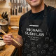 This design features a sleek black background filled with hand-drawn sushi icons in a clean line art style. Bold white typography highlights a culinary studio theme, paired with a minimalist knife graphic and an elegant subtitle for a polished, professional look. The monochrome palette gives it a modern, upscale feel that works especially well for sushi chefs, food lovers, and Japanese cuisine fans. It appeals to anyone drawn to stylish restaurant-inspired artwork with a refined and creative edge.