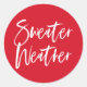 Modern Sweater Weather Script Red Holiday Classic Round Sticker