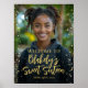Sweet sixteen party welcome sign with photo, with a digital gold stars frame, modern fonts