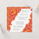 PRODUCT: Bridal, Wedding or Couple's Shower Invitation COLOR PALETTE: hot pink, fuschia, fuscia, orange, tangerine, grey and white. DESIGN COLLECTION: This wedding invitation or bridal shower ensemble is created from original hand water coloured artwork hand painted by Audrey Jeanne Roberts. This swirling diagonal graphic design invite layout is a modern play on baroque swirls and flourishes in bright contemporary colours. The swirl design has a floral leaf look to them and are highlighted with dots.