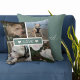 Pet sympathy modern design with 4 photos in a grid with centre text template in dusty green box "love" with hearts and personal message on back throw pillow.