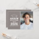 Modern graduation party invitation with a clean taupe colour block, cap icon, and bold varsity-style typography. Personalise with the graduate’s photo, name, class year, and school. The back features a coordinating taupe layout for open house details like date, time, location, and RSVP.