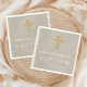 Personalised Modern Taupe Religious Cross Baptism Napkins.