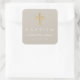 Personalised Modern Taupe Religious Cross Baptism Square Sticker.