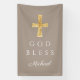 Custom Name Modern Taupe Religious Cross God Bless Banner.