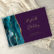 This elegant wedding guest book features a teal blue watercolor agate design trimmed with faux gold glitter. Easily customise the gold-coloured text on a purple background, with the names of the bride and groom in whimsical handwriting calligraphy over a large ampersand. Add additional text of your choice to the front and spine.