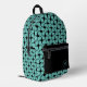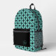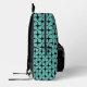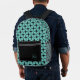 This modern backpack features a black and teal geometric metaball pattern with a custom monogram in a matching teal round frame. All colours are customisable!