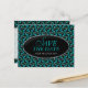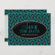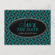 Simple and stylish teal and black funky pattern wedding or engagement announcement save the date postcards. Affordable wedding cards without compromising on style and design.