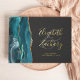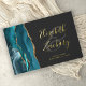 Modern Teal Blue Agate Gold Script Dark Guest Book