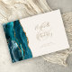 Modern Teal Blue Agate Ivory Gold Script Guest Book