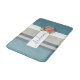 Modern Teal Blue and Tan Striped Floral Bath Mat