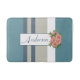 Add a beautiful modern touch to your bathroom décor with this custom bath mat. Bath mat features stripes of blue, tan, and white and a beautiful pink floral accent. Finish the look with your family name. This would make a great personalised gift for a housewarming, bridal shower, wedding, birthday, Christmas, or other holiday!