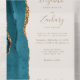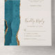 Modern Teal Blue Gold Agate Ivory Wedding All In One Invitation