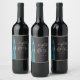Modern Teal Blue Rose Gold Agate Dark Wedding Wine Label
